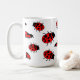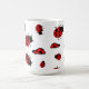 Este design bonito dos desenhos animados tem lotes de joaninhas vermelhos com pontos pretos por todo o lado em uma caneca cerâmica. O design alegre é grande para um amante do inseto.