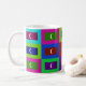 As características deste design multi-coloridas atraentes a bandeira de Maldives repetiram diversas vezes com cada matiz ajustada para criar um efeito do pop art. Nós gostamos de pensar que esta caneca reacenderá memórias maldivas afeiçoadas durante um café ou um teabreak. © FlagAndMap - fonte em linha de presentes e de lembranças internacionais - veja mais produtos em flagandmap.com.