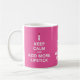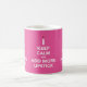 Mantenha a calma e adicione mais caneca de café do batom. Você pode mudar a cor do fundo e o estilo da caneca, remover ou ajustar as imagens. Há 3 imagens com ponta vermelha por a caneca!