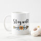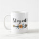 Mantenha a caneca aquosa do estilo do vassoura selvagem com setas, design floral de aquarela e linha de texto na caligrafia moderna.