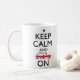 Mantenha a calma e mini na caneca inspirada pelo famoso para manter a calma e continuar posters