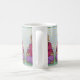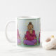 Meditando Buda com Flores em uma Mug com mantra Om Mani Padme Hum