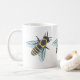 Arte digital colorida de uma abelha, mostrando seu corpo preto e amarelo em um design circular.