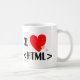 Mim caneca do HTML do coração (amor). Uma caneca com texto inteiramente customizável "mim", corações "HTML" do amor. Este nerd que legal do geek eu amo a caneca do HTML é inteiramente customizável, adiciona seus texto e imagens. Um grande presente geeky para seu amigo da codificação do HTML do computador ou membro da família!
