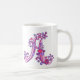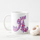 Monograma A caneca desenhado à mão por detrás. design a rabiscada, desenhada à mão, com corações e flores em tons roxos e rosados. © Arte e design de tipografia únicas por Sarah Trett. www.sarahtrett.com para www.mylittleeden.com no zazzle