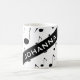 Características deste design da caneca um teste padrão de vário - a música feita sob medida nota. Pôde ser apreciada por um músico, por um compositor, por um cantor, ou por alguém mais quem gosta realmente da música. Igualmente caracteriza um nome personalizado no texto colorido branco dentro de uma área colorida obscuridade, com ambos em um ângulo. [~Z0000051]