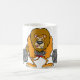 Este design está a uns pesos de levantamento de um leão. O leão tem os pesos à disposição e está a ponto de levantá-los. Os pesos de levantamento deste leão projetam os olhares grandes nesta caneca