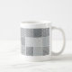 Os painéis quadrados de telas de ponto sobrepor do preto e das cinzas criam os padrões do ondeamento que cercam esta caneca.