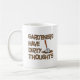 Os jardineiro têm a caneca engraçada dos pensamentos sujos. Uma grande caneca para algum jardineiro que tiver sua mente em seu solo sujo! Caracteriza um trowel dos desenhos animados. Um presente divertido para algum jardineiro. Você pensa sobre a escavação em seu jardim?