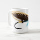A imagem bonita de uma mosca salmon da pesca do encanto azul imprimiu em uma caneca branca lisa