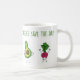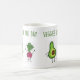 Comece seu dia com um sorriso quando você sorve seu café ou o chá do este vegetarianos bonitos salvar a caneca do dia que caracteriza um abacate e um rabanete.