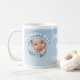 Adorável e personalizado Birthday Boy Winter Onederland Chá cerâmico ou caneca de café com flocos de neve, gelo, castelo de gelo e foto do seu aniversariante. Altere o texto no meio e o número no lado direito.