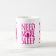 A caneca do slogan do divertimento lê a necessidade mais sono com o o no substituído mais por uma cara de bocejo. Projetado excepcionalmente por Sarah Trett.