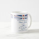 Comemore o nascimento do membro o mais novo da fita real de família que o príncipe George de Cambridge com esta caneca decorou com um vermelho elegante, branca e azul com um coração do cristal do falso. Esta caneca comemorativa é projetada com a data de nascimento dos príncipes pequenos, o peso, e o tempo do nascimento.