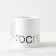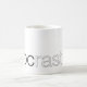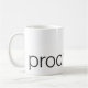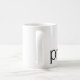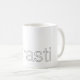 Uma caneca branca com o "procrasti" em Neue Helvética.