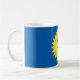 Esta caneca caracteriza umas citações do papa Francis dentro de um sol amarelo em um fundo azul. As cores são uma peça da brasão do pontífice. O texto lê: Quem são mim a julgar? Demonstra a grandeza e a humildade deste homem muito especial.