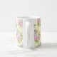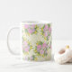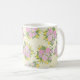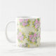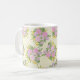 Esta caneca é decorada com rosas cor-de-rosa, rosas selvagens roxos e flores amarelas em forma de estrela em um creme e fundo amarelo texturizado com o padrão suave da vovó.