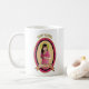 O St. Agatha é um santo adiantado e é considerado o santo padroeiro contra o cancro da mama e igualmente o santo padroeiro daqueles que estão com o cancro da mama. Esta caneca caracteriza um ícone temático cor-de-rosa do santo.
