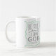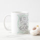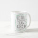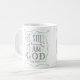 Esta caneca de café caracteriza a frase "seja ainda e saiba que eu sou deus" ao estilo dos sinais rotulados mão do vintage.