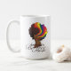 Esta caneca é do meu dela e de dela linha. Em um lado da caneca é a imagem de uma mulher do afro-americano. Tem o cabelo natural, com listras do arco-íris. As listras do arco-íris representam a bandeira de LGBT. Um o outro lado da caneca é meu logotipo.