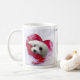 Caneca branca bonito com uma imagem bonito mas dramática do coração de Snowdrop o maltês.