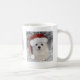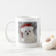 Esta caneca bonito caracteriza Snowdrop, um cão maltês pequeno doce que veste um chapéu do papai noel.