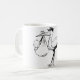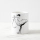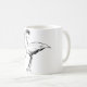 Esta design é uma cegonha segurando um bebê. A cegonha tem o bebê em um cobertor e está segurando-o em seu bico. Esta cegonha segurando uma design de bebê parece excelente nesta caneca