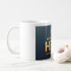 Uma caneca de 11 oz com "Torne-se o seu próprio herói" em texto dourado e um emblema de fênix, perfeito para a motivação diária.