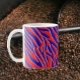 Comece o seu dia com um rugido. A **Caneca Clássica Listras de Tigre Vermelha, Branca e Ousada** apresenta **listras de tigre azuis ousadas com detalhes brancos nítidos** em um **fundo vermelho** impressionante, misturando energia feroz com um toque patriótico.