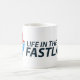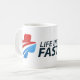 Vida no logotipo da faixa rápida na caneca branca do clássico da porcelana