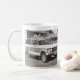 Uma caneca com uma imagem de uma polícia Range Rover em um lado e a legenda "VOCÊ É ENTALHADO" no outro. A imagem é uma reprodução de uma pintura de Fox da "coleção do Sid do carro bobina".