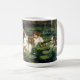 John William Waterhouse Hylas e a caneca das ninfas. Pintura a óleo em canvas desde 1896. O Waterhouse de John do pintor do Pre-Raphaelite seleccionou regularmente a inspiração da mitologia grega. Hylas e as ninfas são uma das pinturas as mais famosas do artista. O trabalho caracteriza o protagonista Hylas que veste uma veste azul com faixa vermelha enquanto se dobra para baixo para tomar a mão de uma ascensão da ninfa de um cheio da lagoa de almofadas de lírio. Suas ninfas da irmã cercam-na que olha lovingly acima no herói. Um grande presente para fãs de J.W. Waterhouse, mitologia grega, Pre-Raphaelites, e art. romântico inglês.