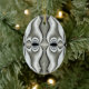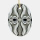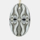 Um intrigante padrão preto e branco decora este ornamento, fazer que se assemelhe a um grupo de faces abstrato.