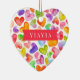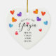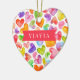 Design de Enfeites de natal Yiayia apresentando um campo de corações coloridos de aquarela. A parte de trás do nosso ornamento pode ser personalizada com nomes de netos.