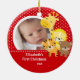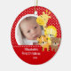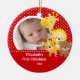 Os enfeites de natal bonitos da foto que caracterizam um grupo adorável de animais da selva com um girafa, um leão & um tigre ajustados em um fundo vermelho & branco das bolinhas, apenas adicionam SUA FOTO! Aperfeiçoe para o primeiro Natal & o segundo Natal. Um presente do Natal da maravilha sure a ser estimado por muitos próximos anos.