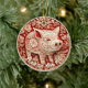 Ornamento em beige bonito e estilo chiiogami vermelho com porcos bonitos e decorações florais. Quer seja um bem-estar para si mesmo, ou um belo presente especial, este lindo ornamento traz certamente um sorriso.