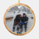Ambos os lados deste ornamento de manutenção apresentam um quadro dourado e um texto personalizável para o ano. Carregue duas das suas fotos favoritas para personalizar este adorno de keepsasasasaes. Este design faz um presente perfeito para qualquer idade ou sexo!