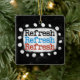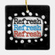 Um design tipográfico bonito que diz "Atualizar Atualização". É texto preto, vermelho e azul em um retângulo branco com pontos brancos engraçados e brincalhões ao seu redor, tudo em um fundo preto.