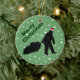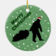 Este ornamento redondo cómico da árvore de Natal tem uma silhueta de um Sasquatch que veste um chapéu do papai noel e que puxa uma árvore do Xmas. Está em um fundo verde que olhe como a neve.