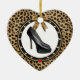 O ornamento perfeito para qualquer amante de calçado! Este belo e na moda de ornamento cardíaco cerâmico de dupla face apresenta um calçado estiletto preto com uma borda de impressão animal chita. Há também sotaques adoráveis de ouro e corações e um arco ouro também! O verso diz Feliz Natal, e está pronto para você acrescentar um nome e um ano a ele! Dar para o seu amante de calçados favorito! Outros estilos de calçado, cores e impressões animais também estão disponíveis em nosso compro!