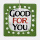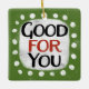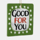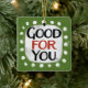 "Bom para você" é um design de texto divertido com forma de sotaque branco cercado por pontos brancos texturizados.