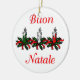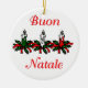 O ornamento, um lado diz Buon Natale, o outro lado diz o Feliz Natal!