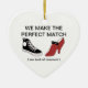 Calçados com palavras dizendo que nós fazemos o fósforo perfeito você casar-me-á enfeites de natal.