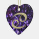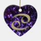 Cancer Dourado do sinal do zodíaco no ornamento roxo do brilho. O coração astrológico colorido deu forma ao ornamento no roxo sparkling e em um verde com símbolo astrológico da guarnição metálica do ouro para o cancer. Um grande presente para seu caranguejo favorito esta época natalícia.