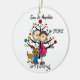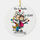 Um ornamento cerâmico bonito, do divertimento que caracterizam uma figura casal expectante da vara, um cão, a árvore do feriado, e o texto que nos lê "estão esperando!" com uma área você pode adicionar seu nomes ou sobrenome e a adição o ano em curso!