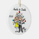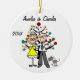 Um ornamento cerâmico redondo bonito do feriado do Natal da lembrança caracteriza uma figura casal das pessoas idosas e um gato da vara na frente de uma árvore de Natal decorada com áreas que você pode personalizar com nomes e o ano em curso! Este ornamento bonito da lembrança do feriado faz um grande presente para avós, para um casal novo das pessoas idosas que apenas se encontre no ano em curso, para o casal que se realizou junto por 50 anos!
