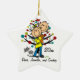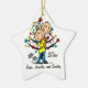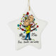 Uma estrela bonito deu forma a características cerâmicas do ornamento da lembrança uma figura casal da vara no amor que tem seu gato! Adicione facilmente sua escolha do texto e da data ao ano em curso nesta figura bonito casal da vara com o ornamento do design do gato e da árvore de Natal. Faz uma grande ideia do presente!