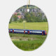 Comboio S-Bahn-7z5 no país do Ornamento Europeu. Esta é a parte azul, branca e frontal do trem vermelha. Este é um trem de alta velocidade atravessando o país. Isto é coletável, único e do tipo. Isso daria um presente de Natal excelente para a pessoa que ama os trens, seja eles os constroem, os comprares ou os dirigem. Isso também daria um presente de excelente aniversário.
