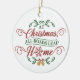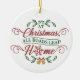 Um ornamento cerâmico personalizável com texto que lê No Natal Todas as Estradas Lideram Em Casa. Você pode remover a imagem na frente e atrás e substituí-la por uma de suas.