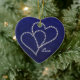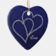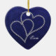 Dois corações feitos do cristal de rocha bling do estilo - diamantes que conectam e que ligam-se sobre se em um fundo profundo dos azuis marinhos com uma cor damasco subtil nela. Excelente para casamentos, aniversário, noivado, celebração do amor, romance, casais. Pendure de sua árvore de Natal todos os anos em honra do ano dado ou comemorado. Personalize o texto para serir-me aqui ou enviar por correio electrónico se você precisa a assistência com personalização ou a imagem colocada em outros produtos de Zazzle em minha loja. Se eu posso… eu vou faz4e-lo! ~:)